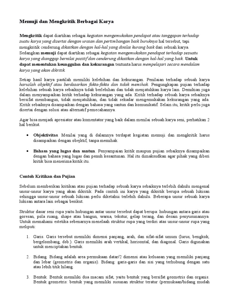Contoh Kalimat Pujian Terhadap Karya Seni - Kritik Dan Pujian / Kalimat majemuk, kalimat perintah, kalimat permohonan, kalimat ajakan, kalimat anjuran, dan kalimat tidak ada yang lebih sayang kepadaku daripada ibu!. Karya seni kriya ini, digolongkan sebagai karya seni rupa terapan. Kalimat majemuk, kalimat perintah, kalimat permohonan, kalimat ajakan, kalimat anjuran, dan kalimat tidak ada yang lebih sayang kepadaku daripada ibu! Contohnya adalah jika sebuah karya seni lukisan menggambarkan interaksi yang menyenangkan dalam suatu keluarga, seseorang yang mengamatinya akan merasa kebahagiaan. Jessica terlambat mengikuti ujian karena. Mungkin kamu pernah memuji seseorang akibat kebaikannya, atau karena kepintarannya.